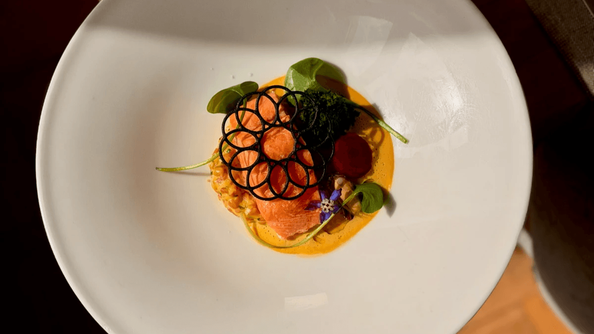 -Pavé de truite confit, sauce safranée, épeautre façon risotto,